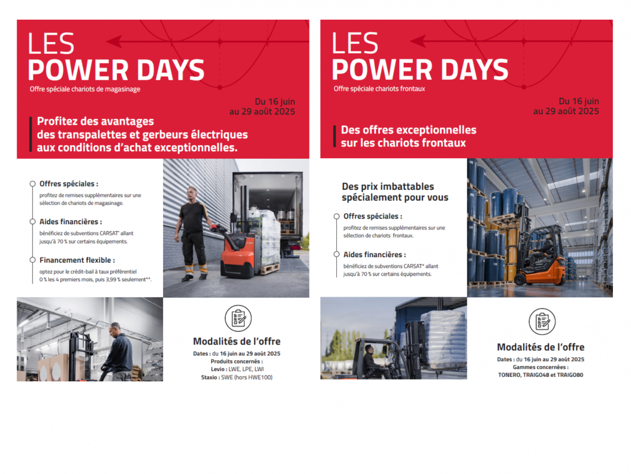 ⚡POWER DAYS : Des offres à ne pas manquer sur les chariots frontaux et sur nos matériels magasinages